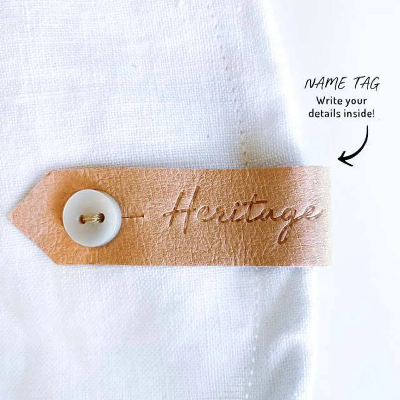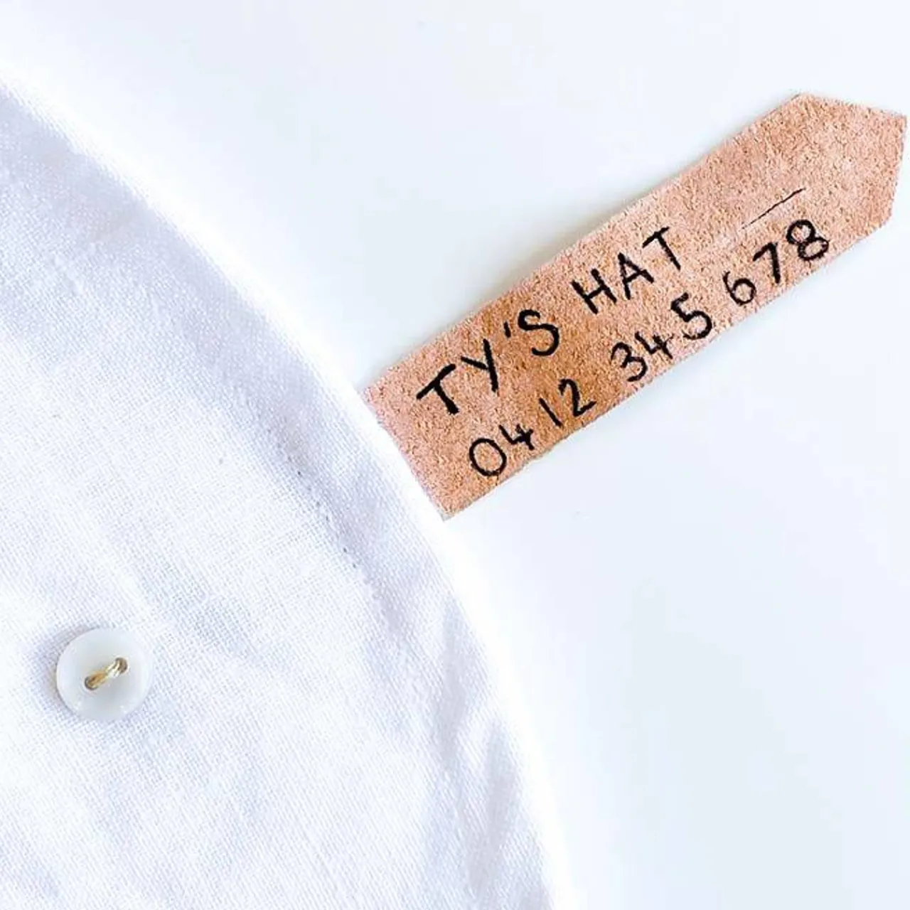 - Beautiful button-up leather ‘Return to’ label for names to help hats get home safely