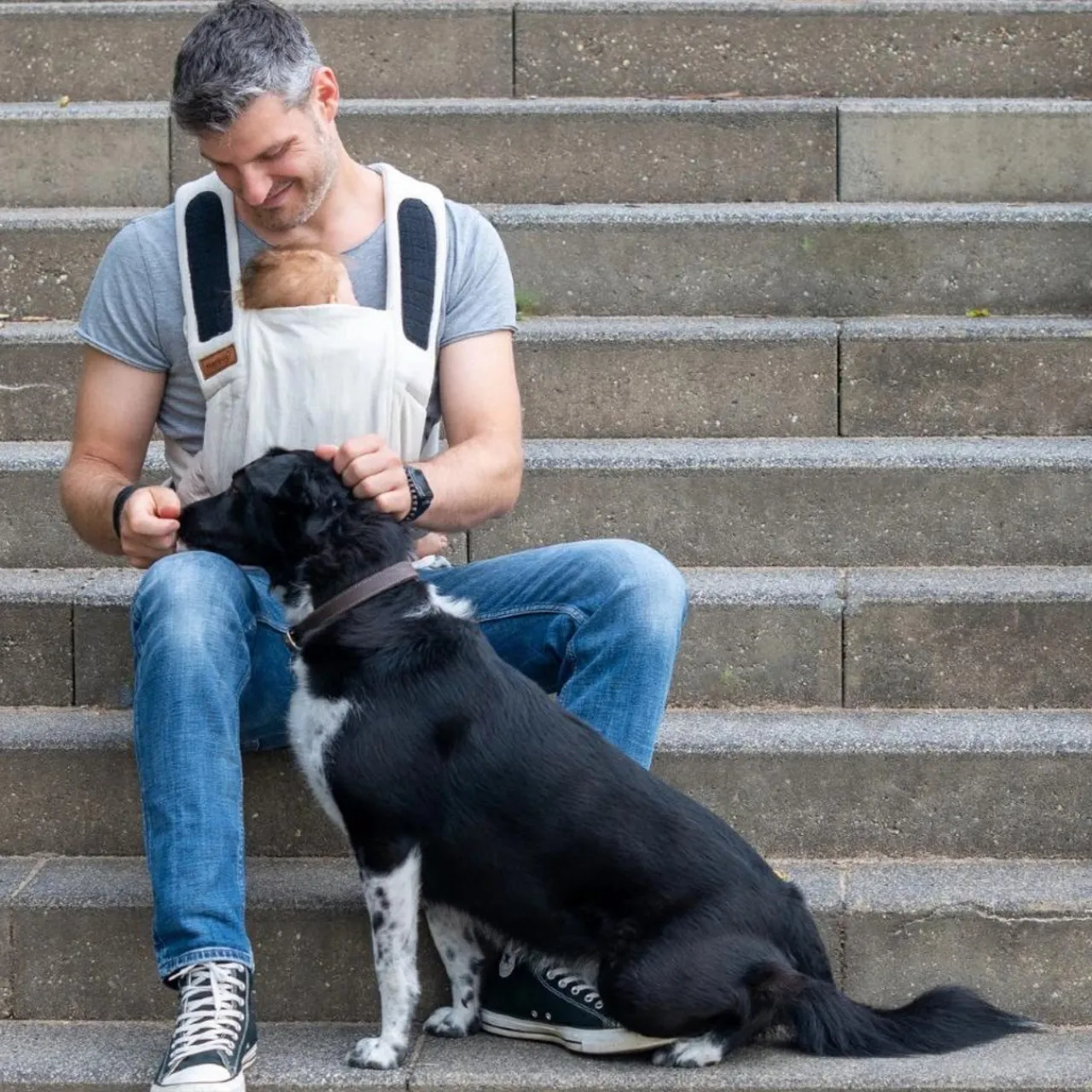 The Bondolino is particularly quick and easy to put on, thanks to the hook-and-loop fastener on the waist belt. You cross the shoulder straps behind your back and secure them with a double knot. This allows the Bondolino to adapt to various body sizes automatically, making it ideal for parents of different sizes.