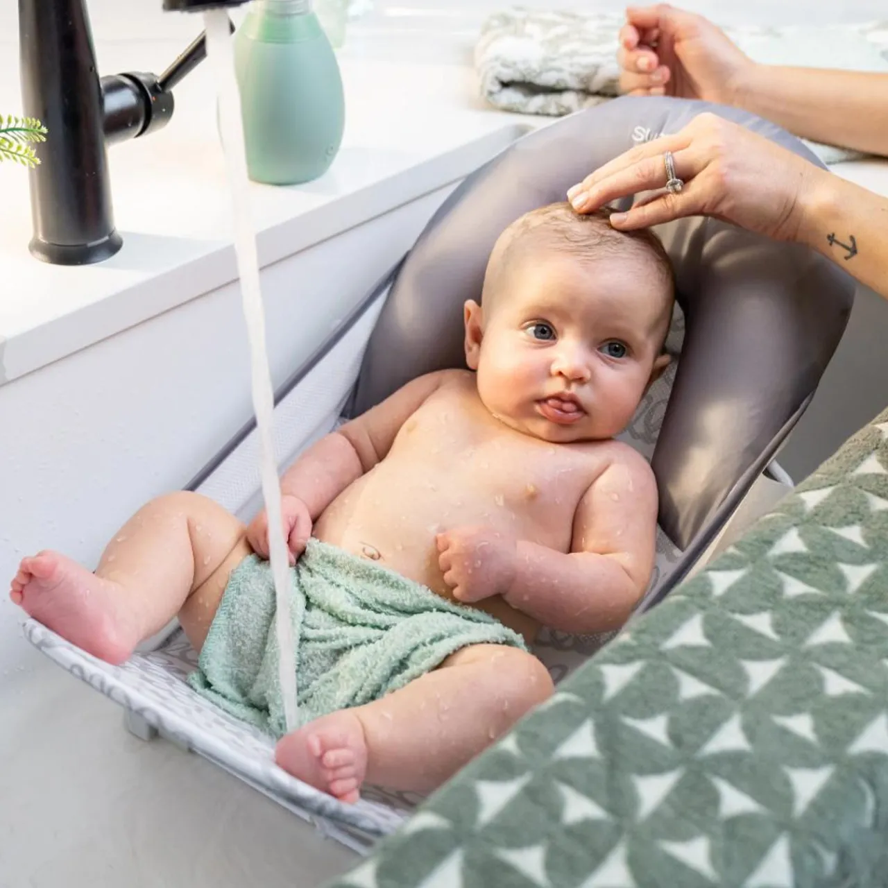 - 4 non-slip grips on the bottom of the bather that help keep it in place