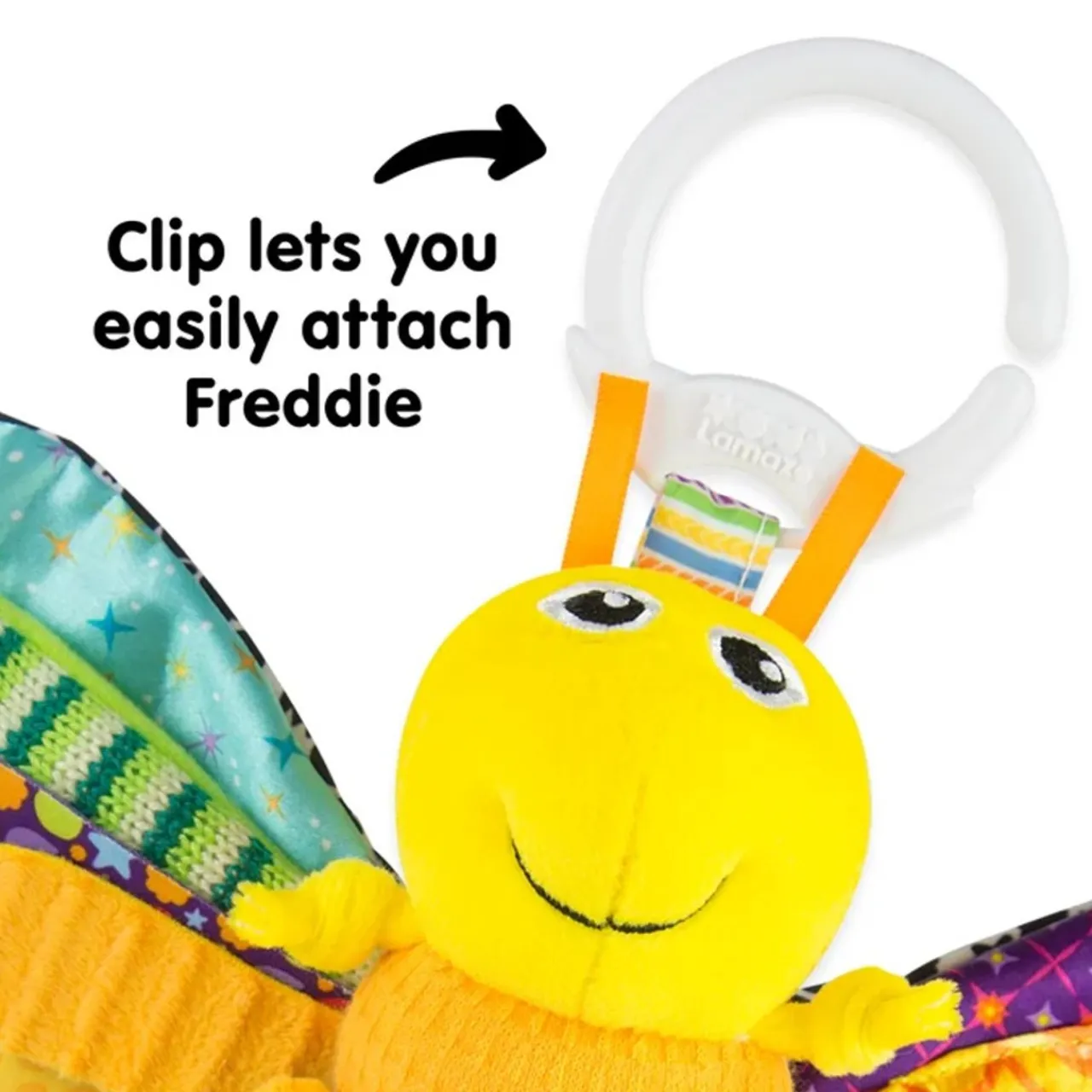 DetailsFreddie the Firefly is a colourful and stimulating toy.Suitable from birthColourful and texturedAttach to pram or…