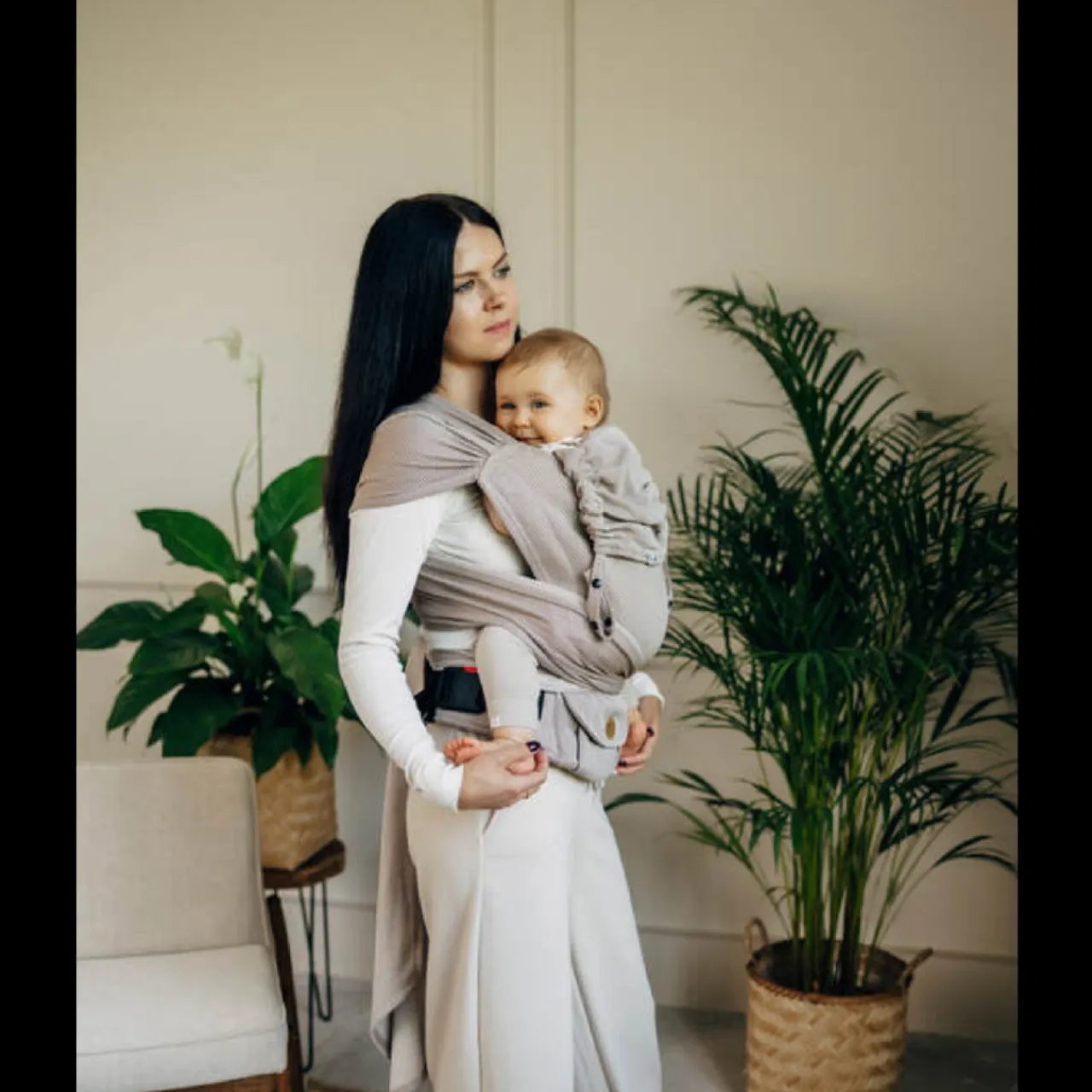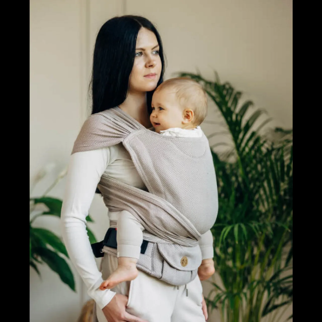 LennyHybrid Half Buckle Carrier is a unique carrier that combines the advantages of an adjustable carrier and a wrap. Thanks to its design and adjustment system it allows to achieve a correct, ergonomic position of the baby. Additionally, it has two wrap straps that stabilize the baby’s position on the sides, which makes it possible to carry a newborn baby safely. The panel adjustment makes the carrier grow with your baby.