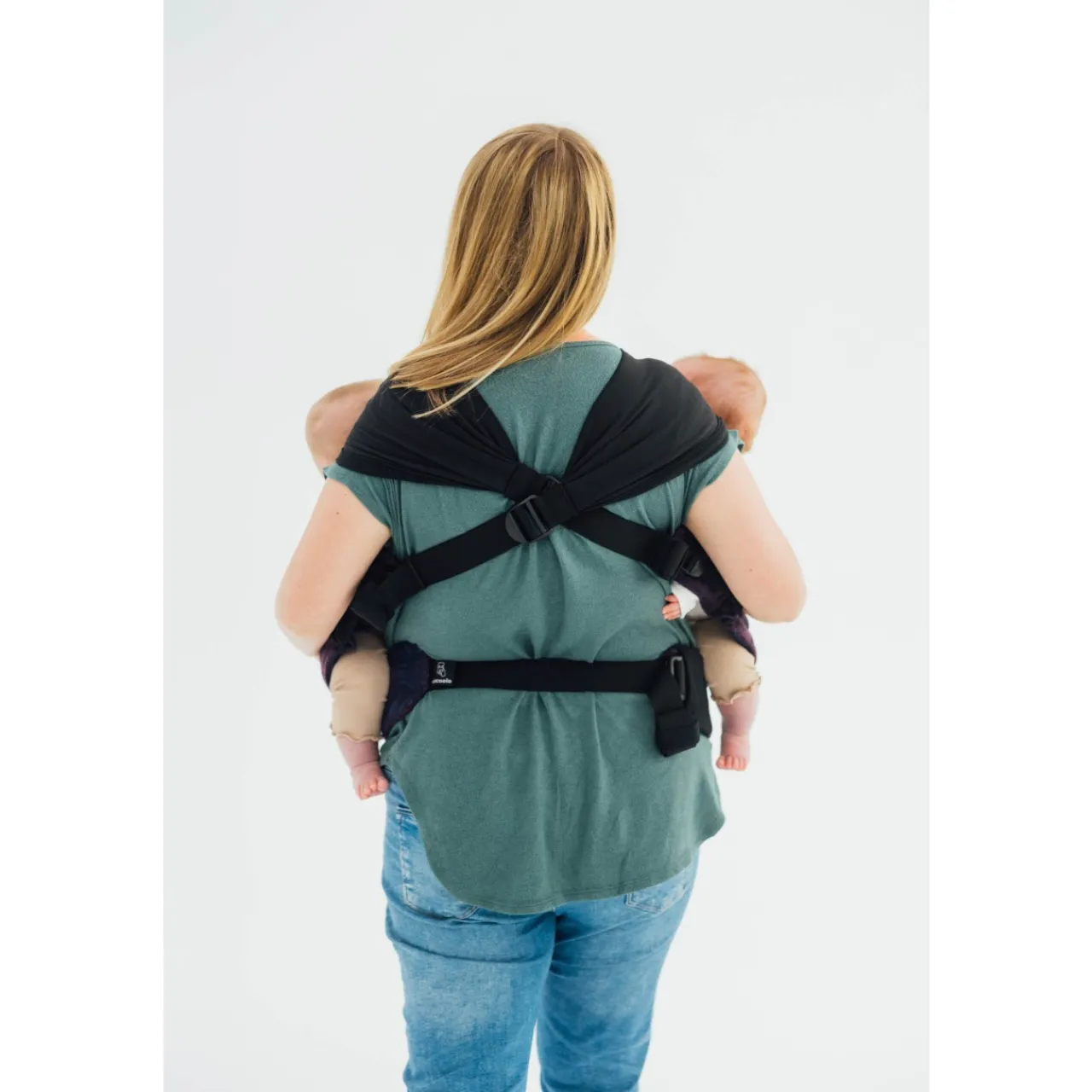Babies can be worn on the front or hip.
