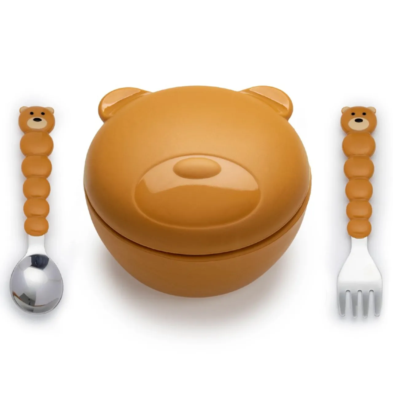 - Easy grip handles for little hands on utensils