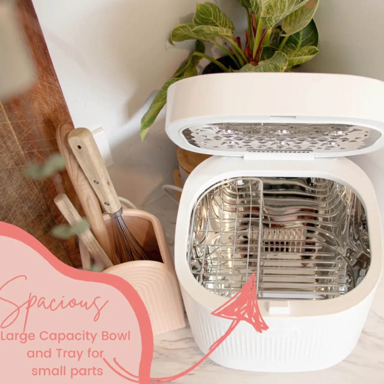 - Sterilises and dries bottles, breast pump parts, pacifiers and more