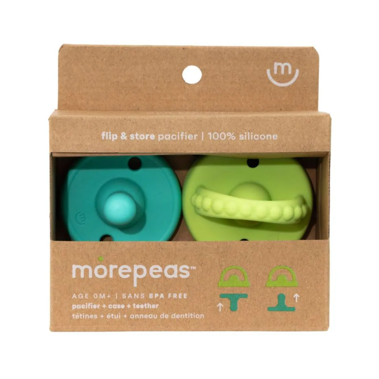 - Pacifier can flip into the case for storage