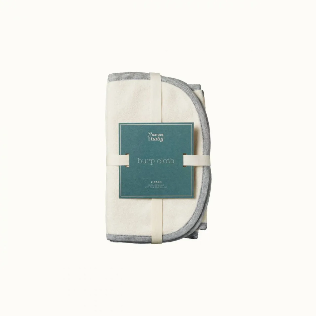 The gorgeous Nature Baby Burp cloth comes in a convenient 2 pack and is a must have. This Burp Cloth curves into the shape of your neck and generously covers your shoulder, chest and back catching all those little spills. Made from luxuriously fluffy organic towelling with a hint of stretch, and a contrasting trim.