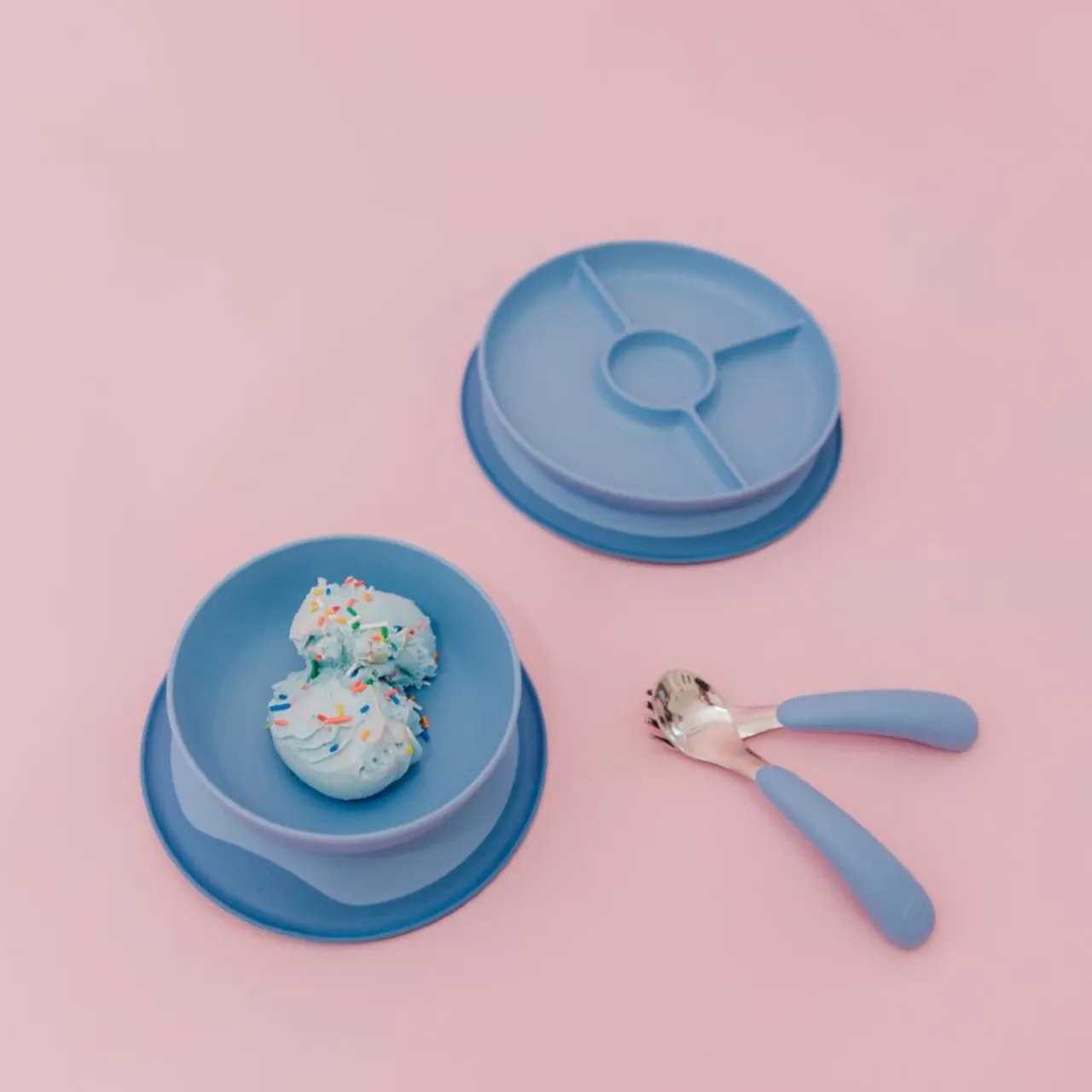 - Tantrum-proof Plate sticks to surfaces until mealtime is over