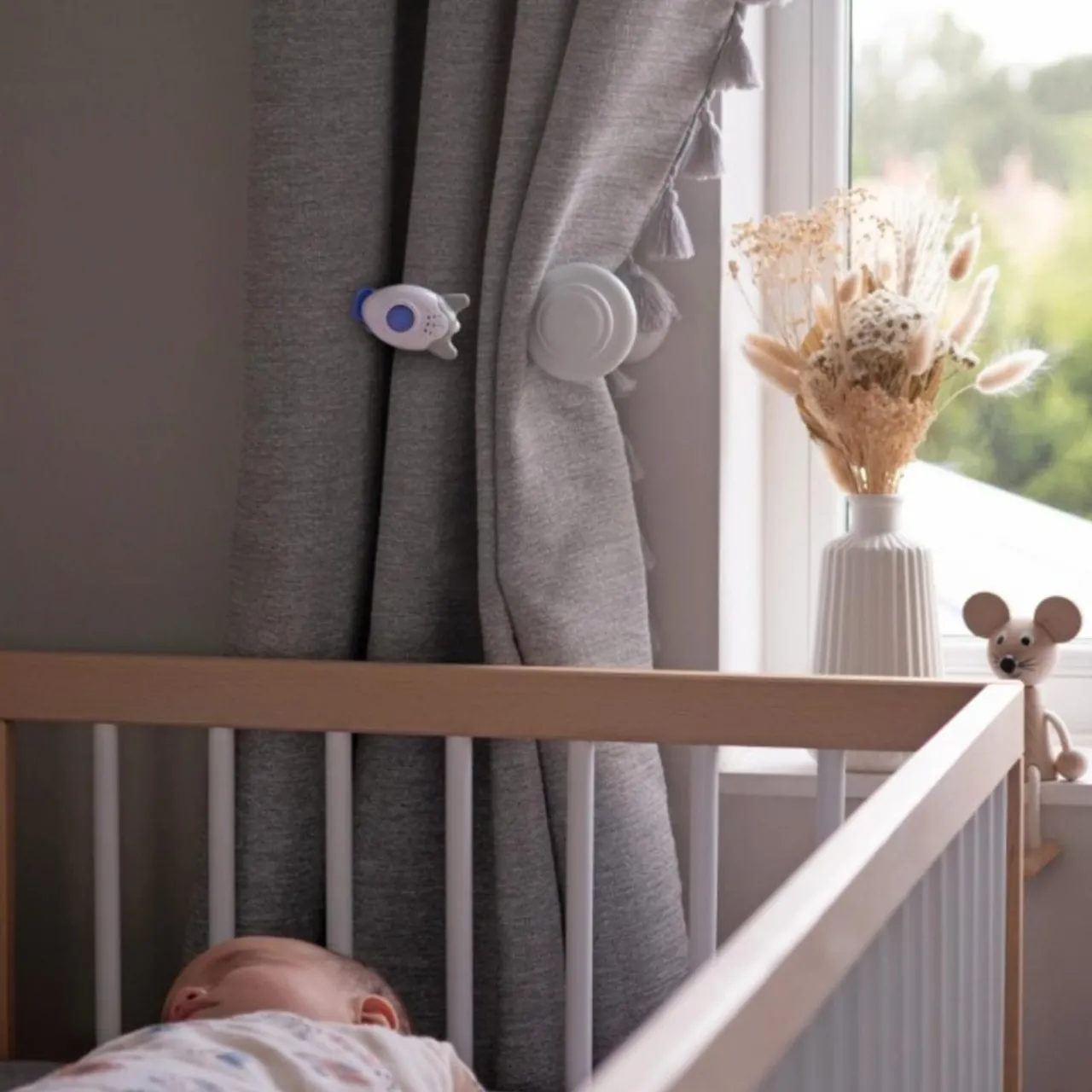 - Versatile design allows you to stand, clip or strap it out of reach of your baby – use it inside or outside.