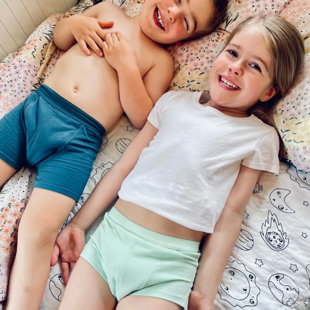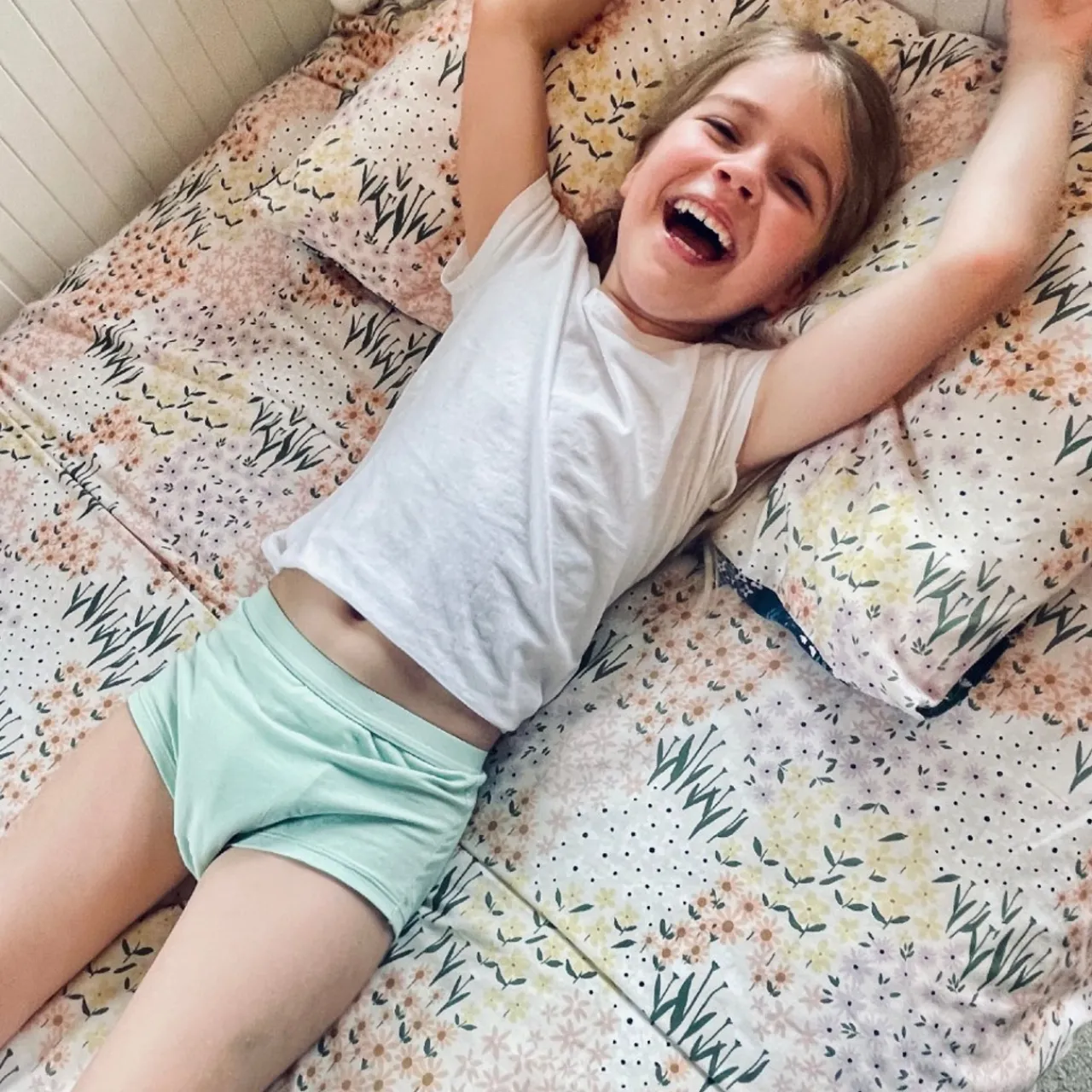 A washable night time training pant from Snazzipants to help get your child out of pull ups. The Snazzipant night pants are absorbent, re-usable and comfortable. In fabric patterns that aren’t childish – your child will love these night time, big kid pants. A great alternative to disposables, they save you money and reduce landfill.