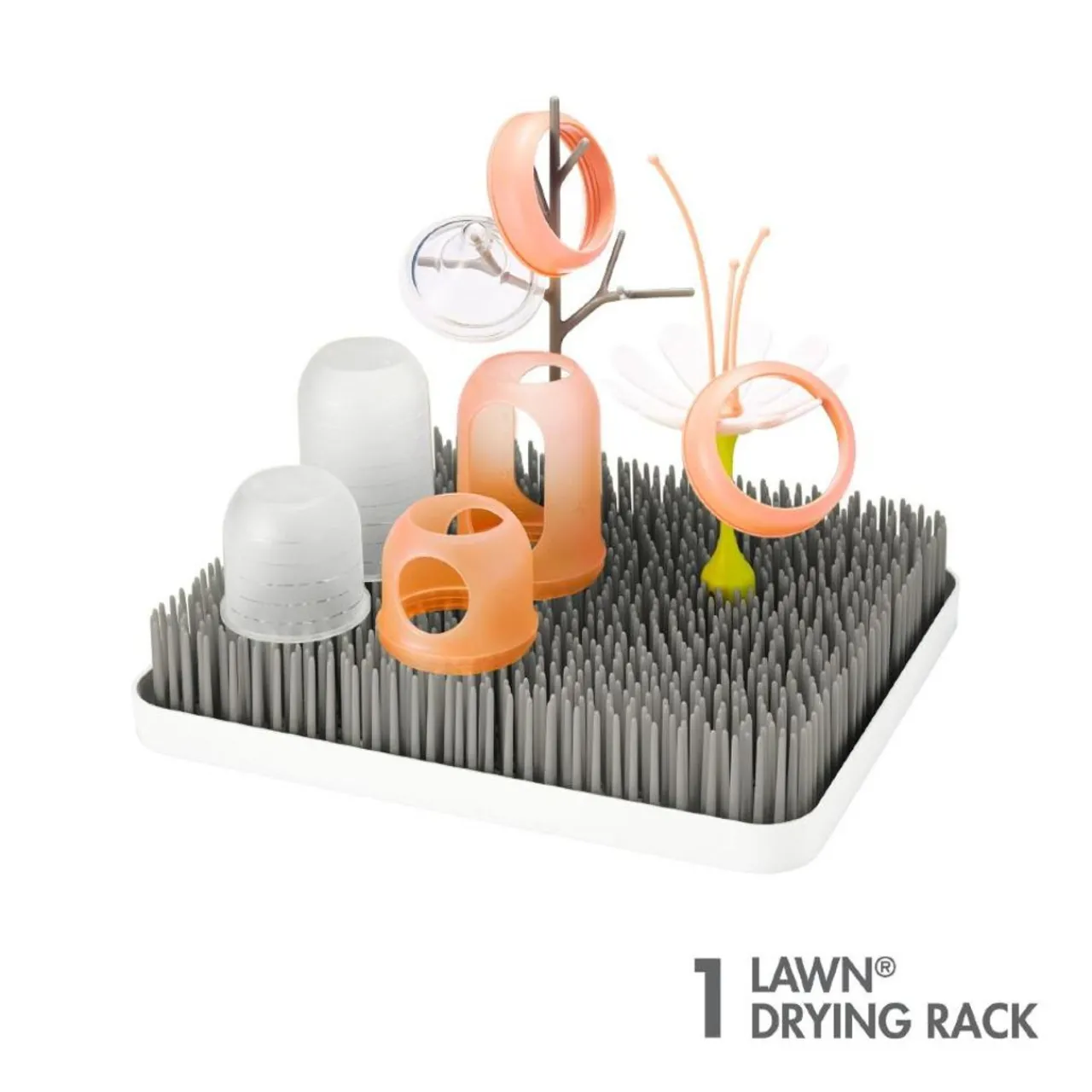 - Easily holds items upright for drying while excess water collects in the bottom tray