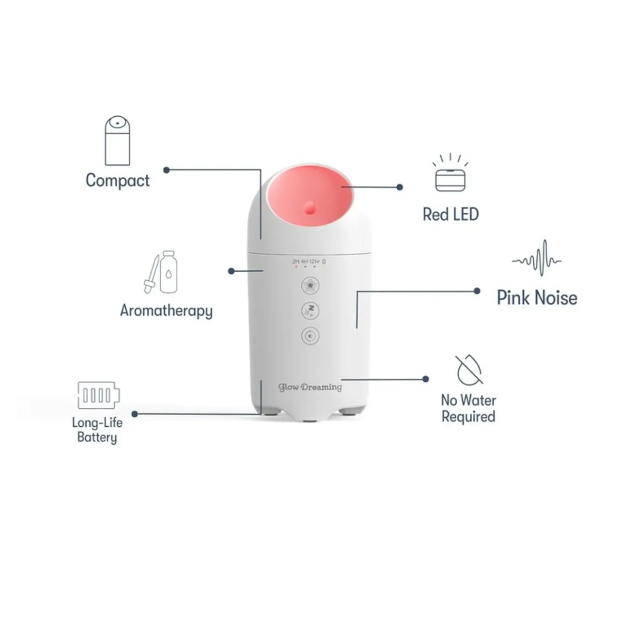 DetailsCompact and portableRechargeable batteryRed LED lightPink noise (waterfall sound)Sleep timer