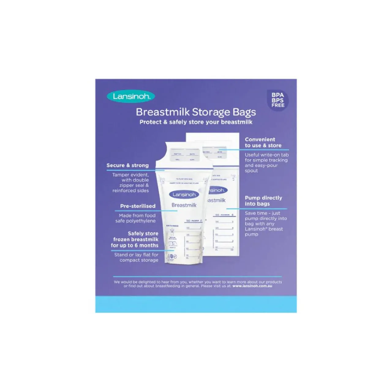 - Stores frozen breastmilk safely for up to 6 months